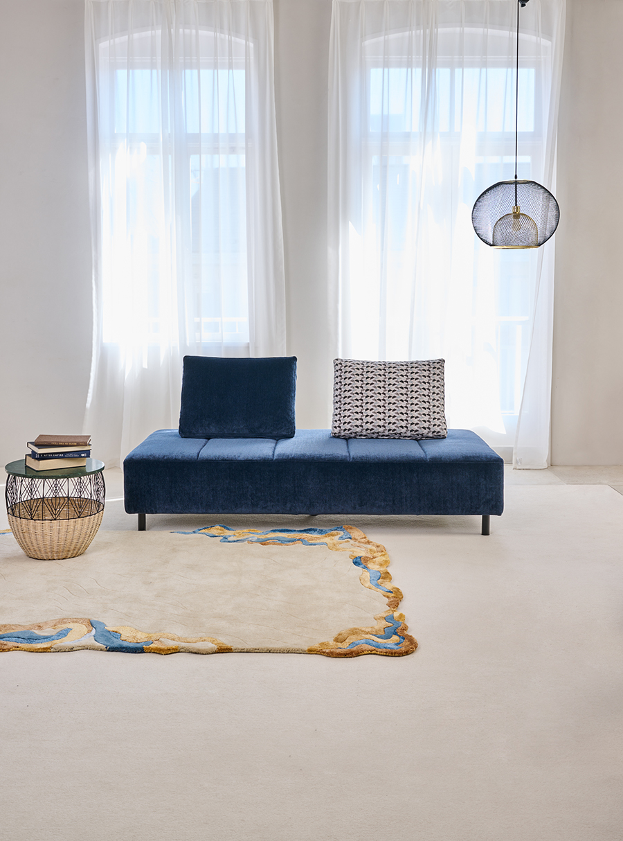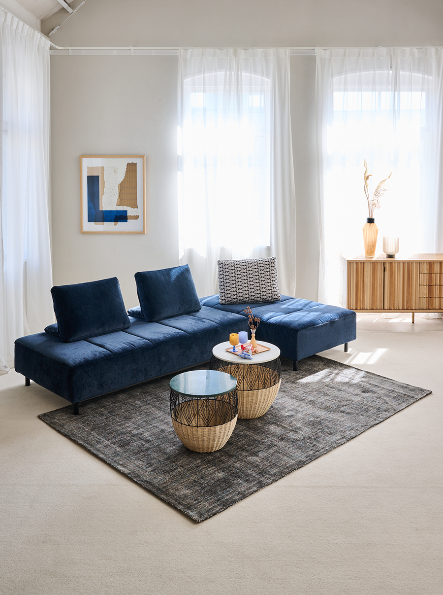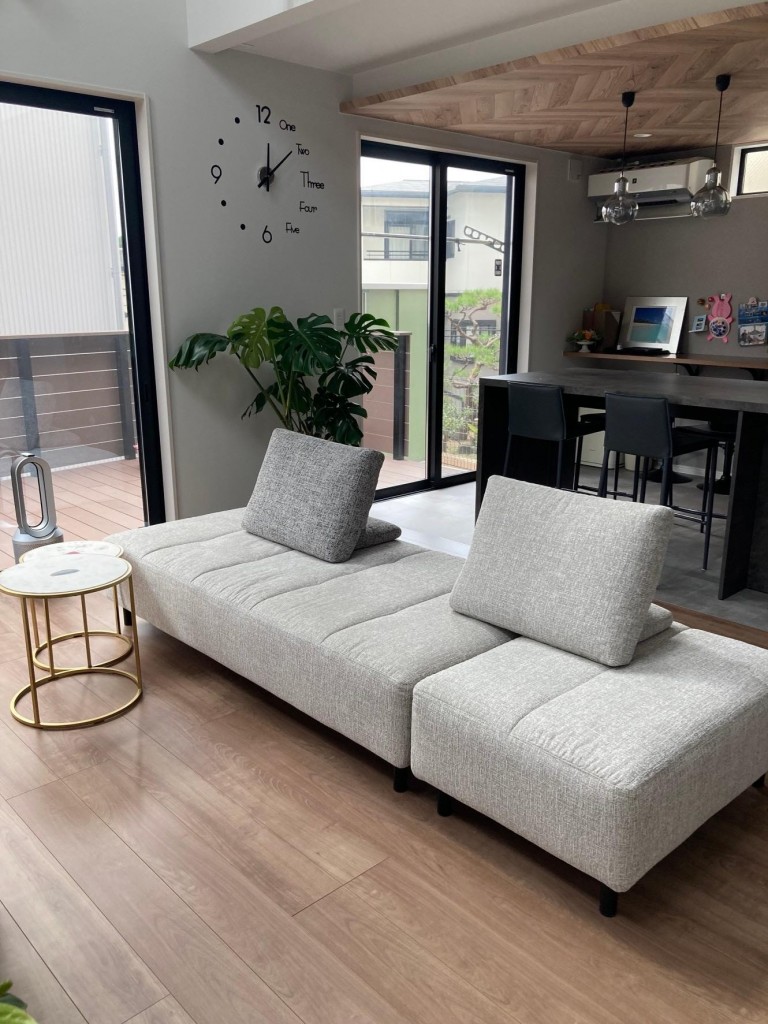 足を伸ばしてゆっくり過ごしたい方におすすめの組み合わせ。肘がないのでL字の向きも後から自由に変えられます。