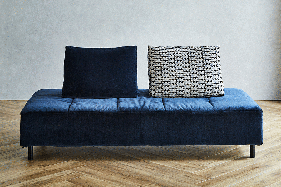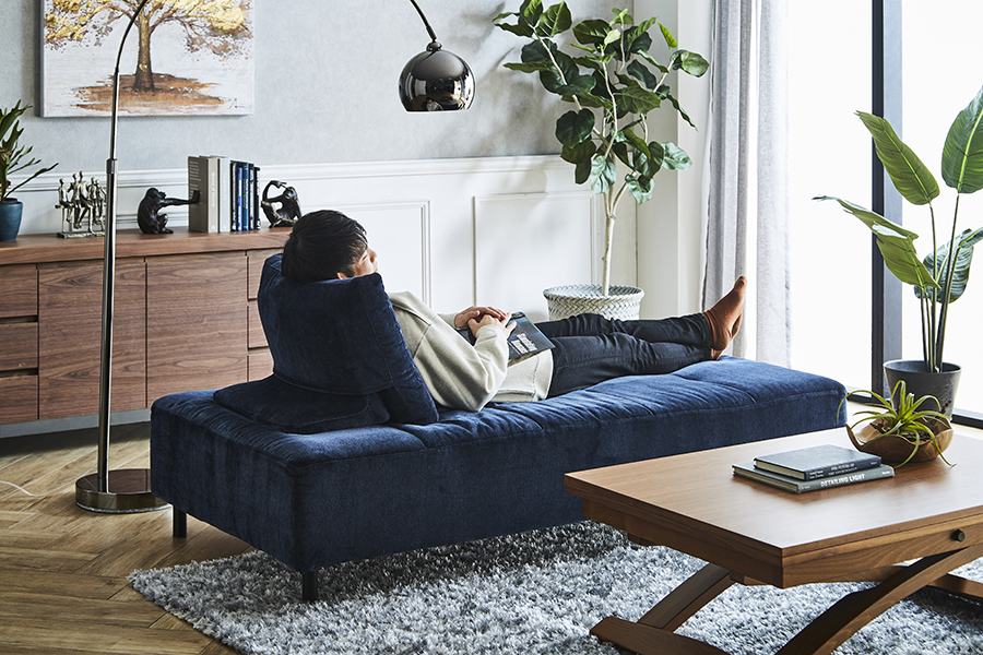 休日のお昼寝には枕として 休日のお昼寝や横になって映画鑑賞をしたいときには枕として。左右に肘がなく、奥行もシングルベッドに近いので、来客用のベッドとしても頼もしい存在です。