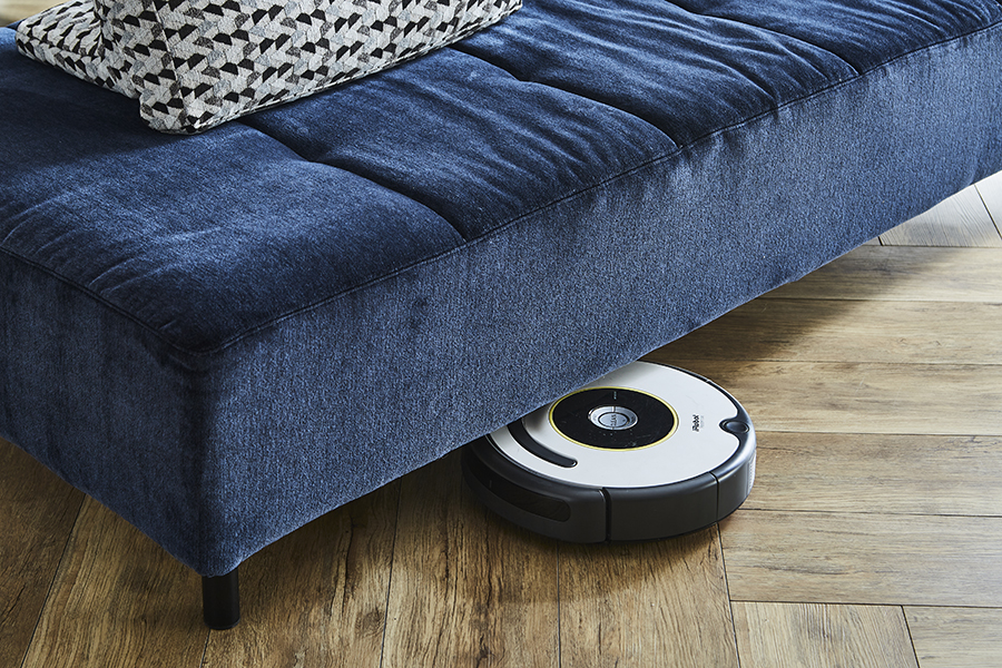 お掃除もストレスフリー 脚の高さは2種類から選べます。どちらもお掃除ロボットが入るスペースが空いているので、ソファの下もスイスイ入れて、毎日清潔に保つことができます。