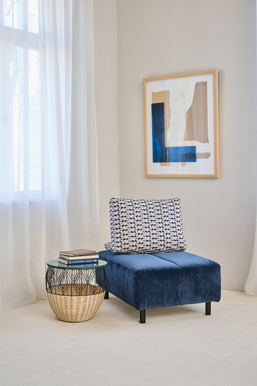 オットマンにクッションレストをのせれば、一人掛けソファに。