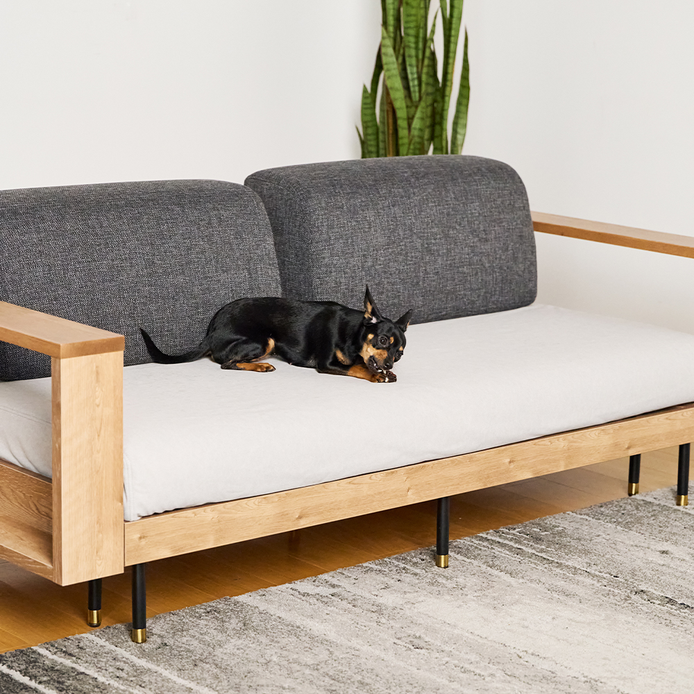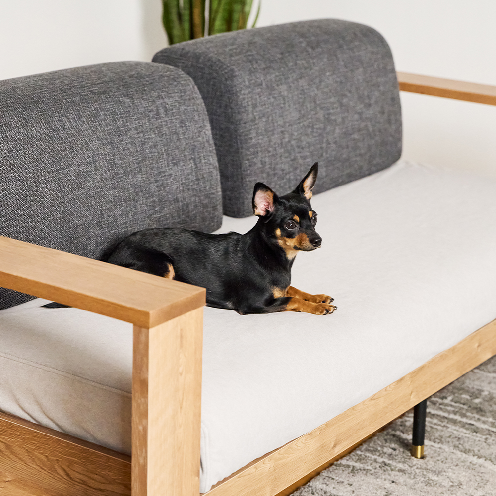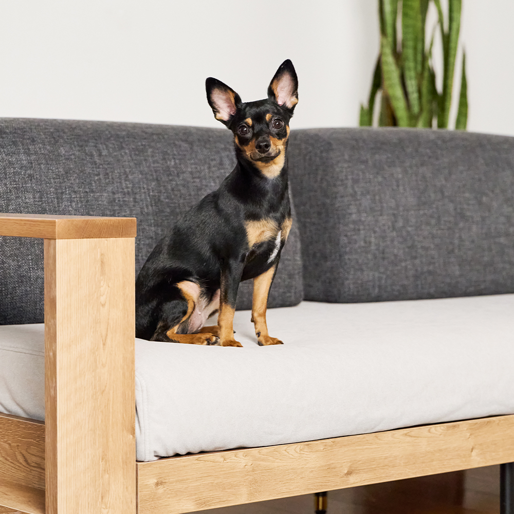 犬や猫がソファの上でくつろいだり飛び乗ったりしても、日常使いで大きなダメージが残りにくいのが魅力です。