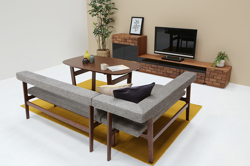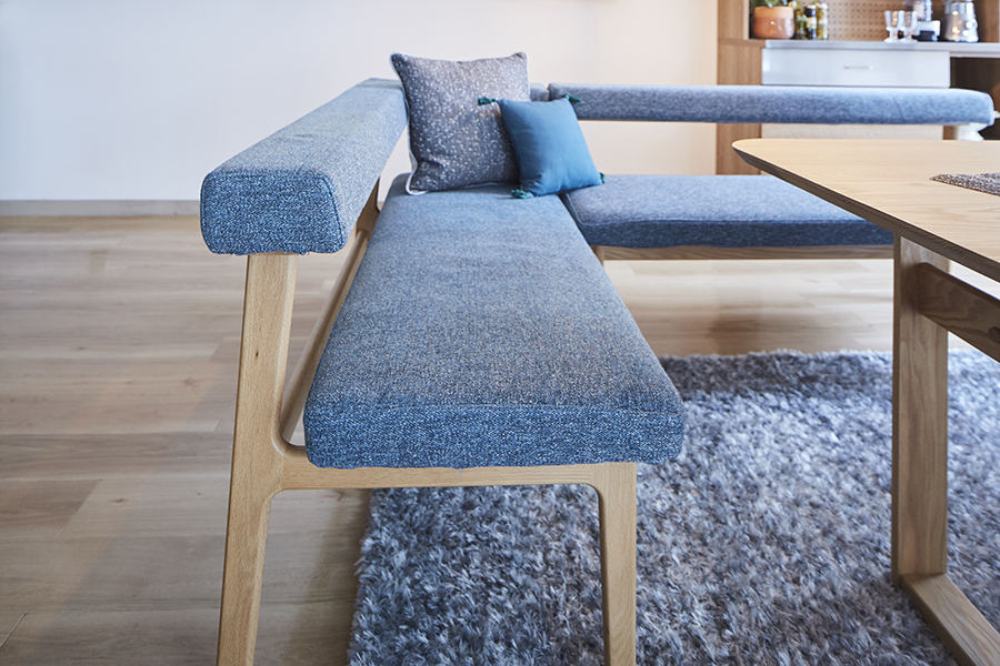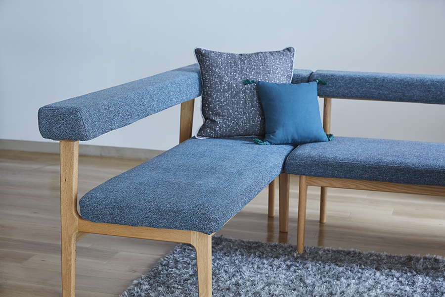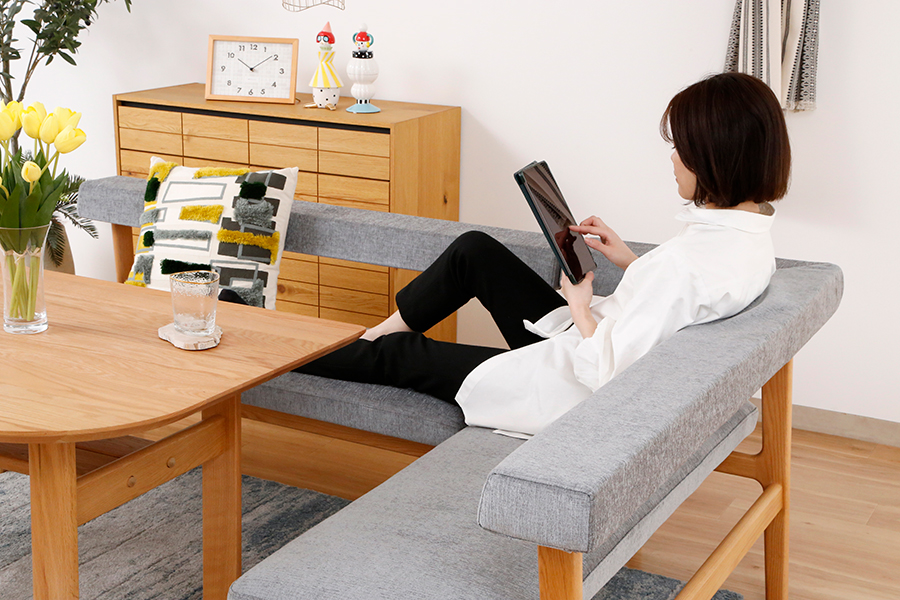 組み合わせも自由自在。ゆったり座りたい方は同シリーズの「MOCOAカウチ」と組み合わせてL字のベンチに。「MOCOAスツール」があると更に便利。来客時の補助スツールやオットマンとしても活躍してくれます。