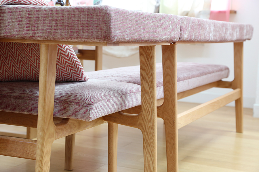 座面の高さは45cmですが、クッション性があるため高さ65cm~72cmのダイニングテーブルと相性が良いです。
