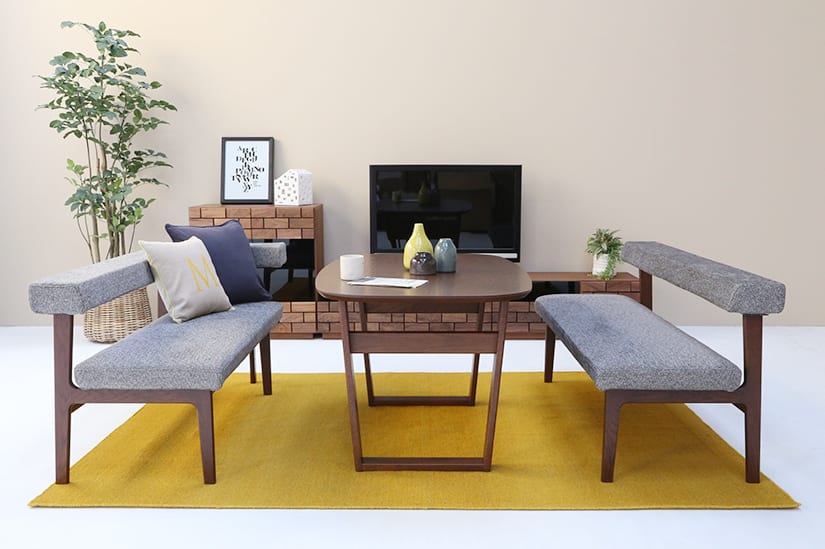 組み合わせも自由自在。ゆったり座りたい方は同シリーズの「MOCOAカウチ」と組み合わせてL字のベンチに。「MOCOAスツール」があると更に便利。来客時の補助スツールやオットマンとしても活躍してくれます。