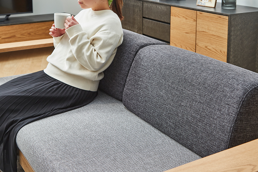 クッションは置き場所を選ばない自由な設計に。肘の部分にも置くことができ寛ぎ方を自分好みに変えられます。