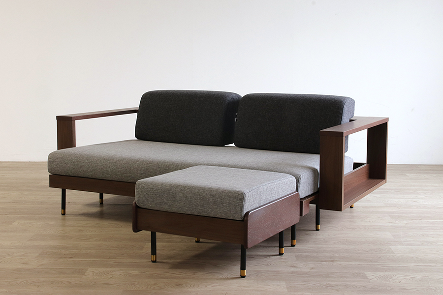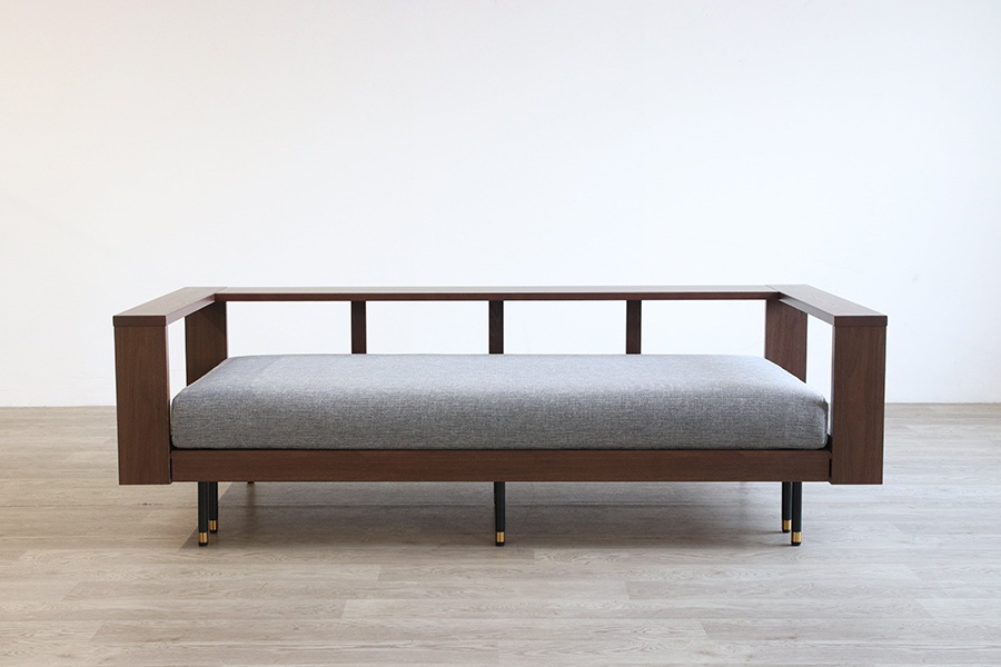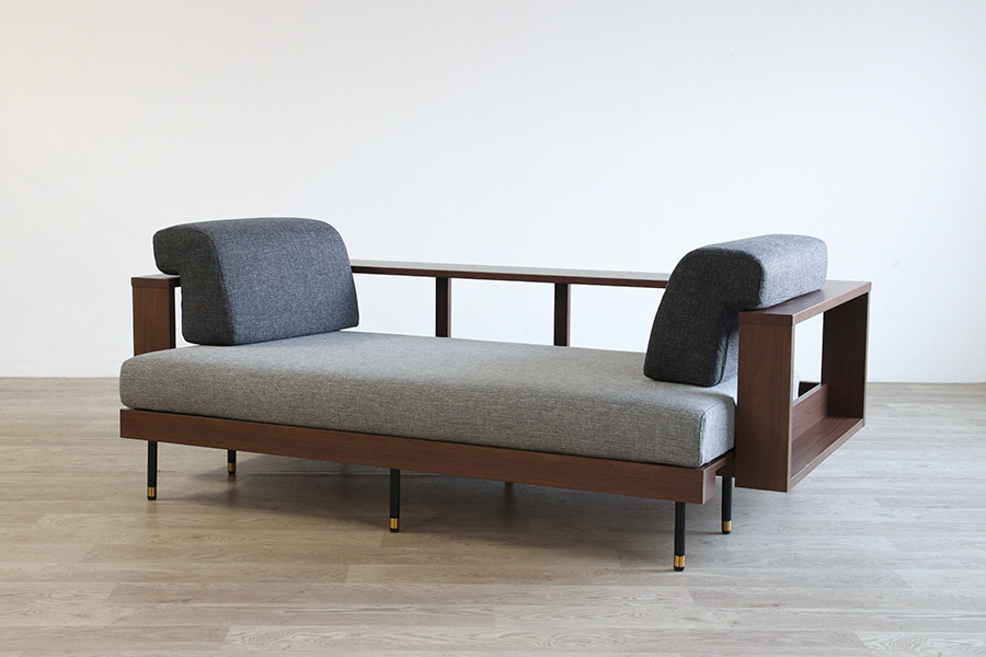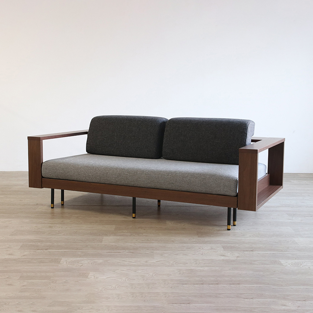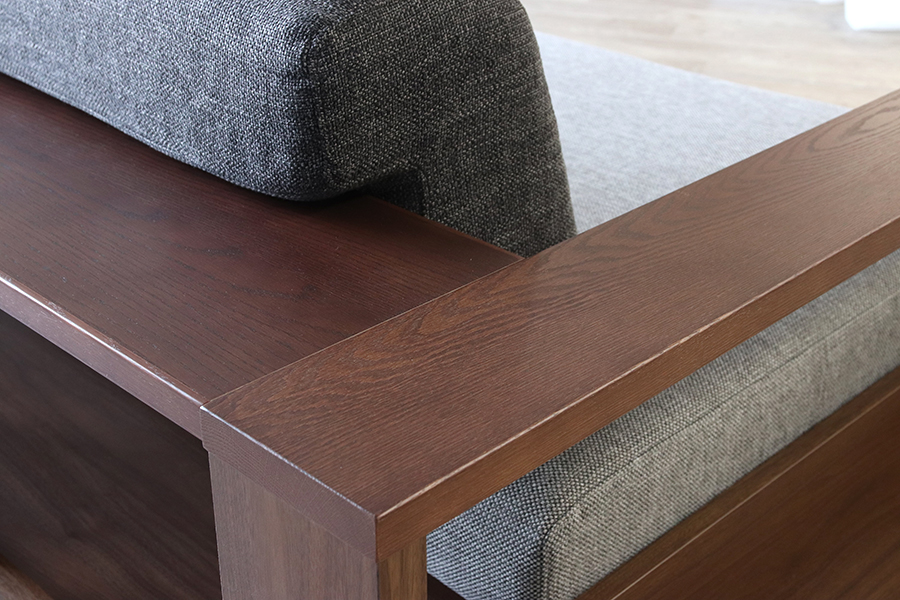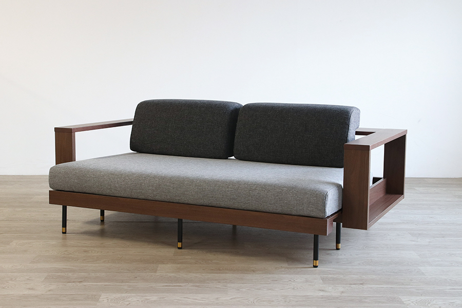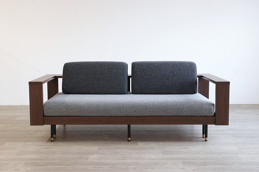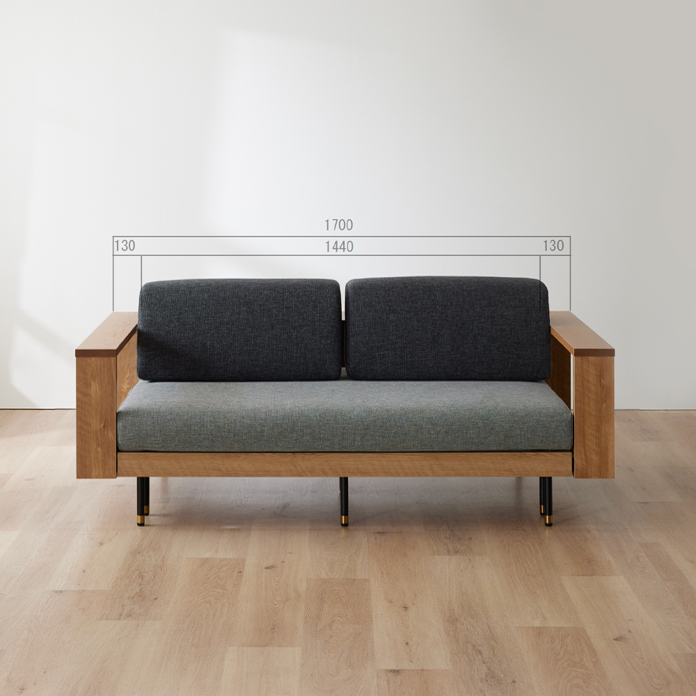 シャープでモダンなウッドフレーム。全体の高さが59cmのためお部屋の真ん中に置いても圧迫感なくすっきり。※背クッションの高さは含まれておりません