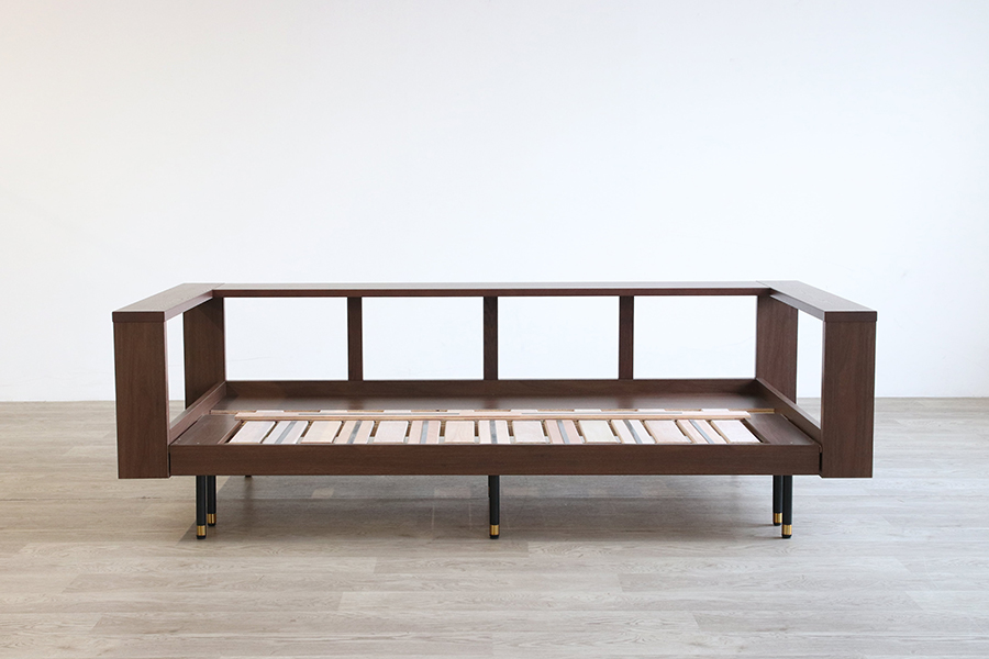 座面は前後にスライドすることで奥行を変更してお使いいただけます。来客時の簡易ベッドとしても活躍してくれます。