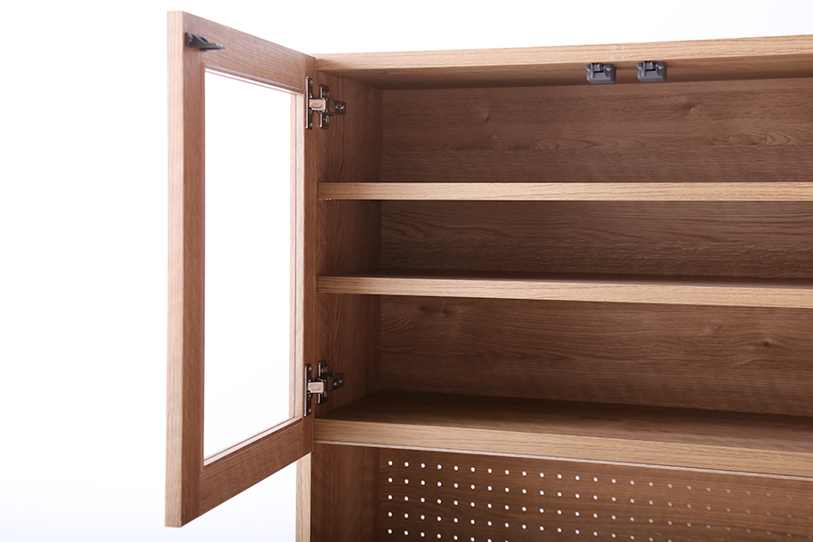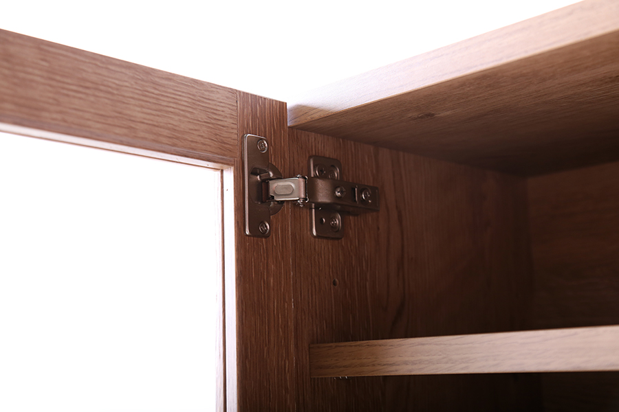 内部は可動棚タイプですので、高さを自由に変えて食器を効率よく収納して頂けます。本体同様に木目のオレフィンシート仕上げで細部までこだわりが詰まっております。
