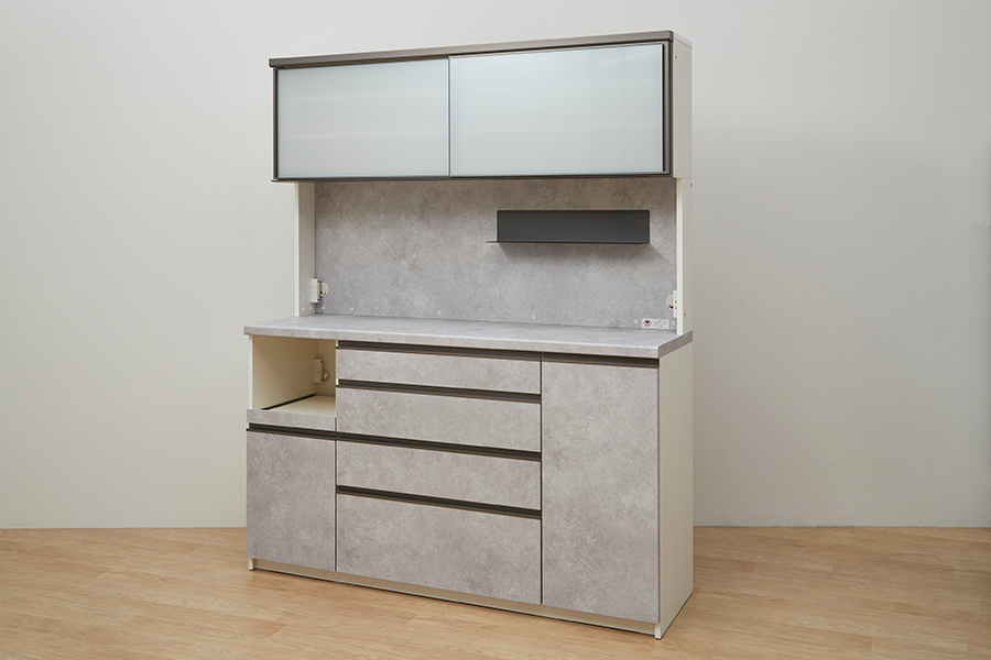 上部には熱や湿度に強いアルミボードを採用しました。調理家電から生じる熱や蒸気から食器棚の腐食を守ってくます。