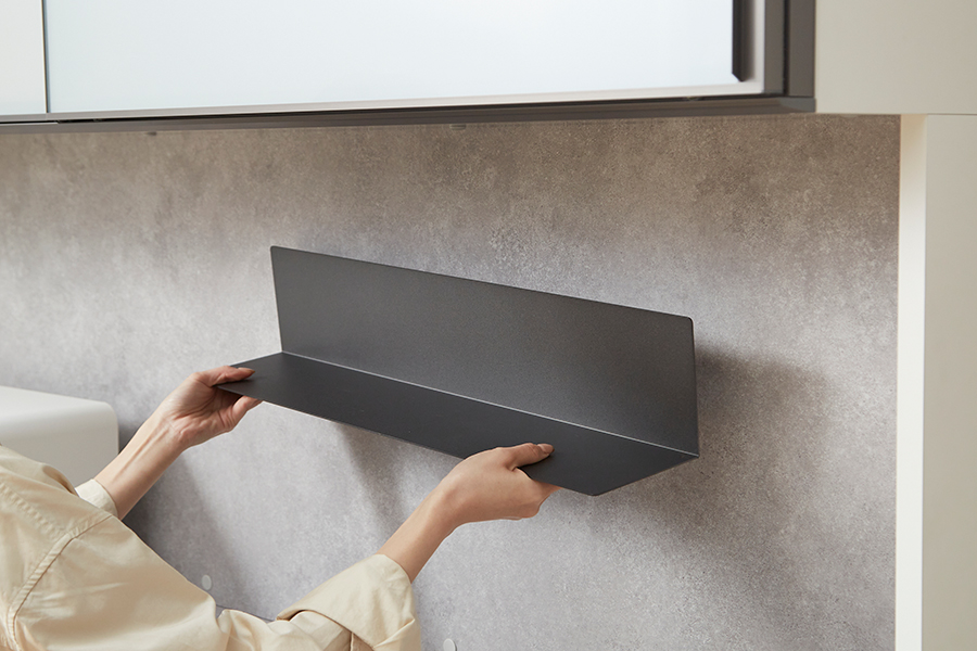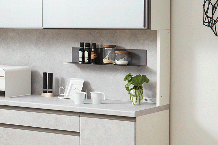 バックパネルにはマグネットが取り付け可能です。調味料入れやキッチンペーパーなどのキッチングッズを自分好みの使いやすい場所へ。物を浮かせることでお手入れがしやすく清潔なキッチンを保てます。