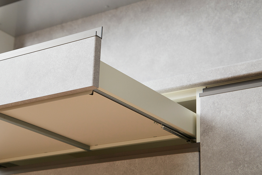 レールは耐久性・滑らかな走行性に優れた世界屈指のレールメーカーであるドイツ・ヘティヒ社製を採用。左右のレールが同時に動く精密設計の為、動き出しが軽く静かで滑らかです。開閉時に生じるブレを軽減するため、お皿同士がぶつかることもありません。汚れをかき出しながら走行するセルフクリーニング機能でメンテナンスも不要です。