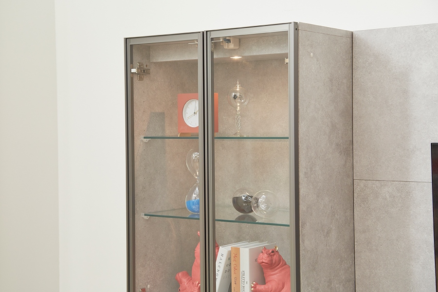 棚板の高さは調整できるため、飾りたいものに合わせることが可能です。内部の模様もセラミック柄のため全体的に統一感がありスタイリッシュです。