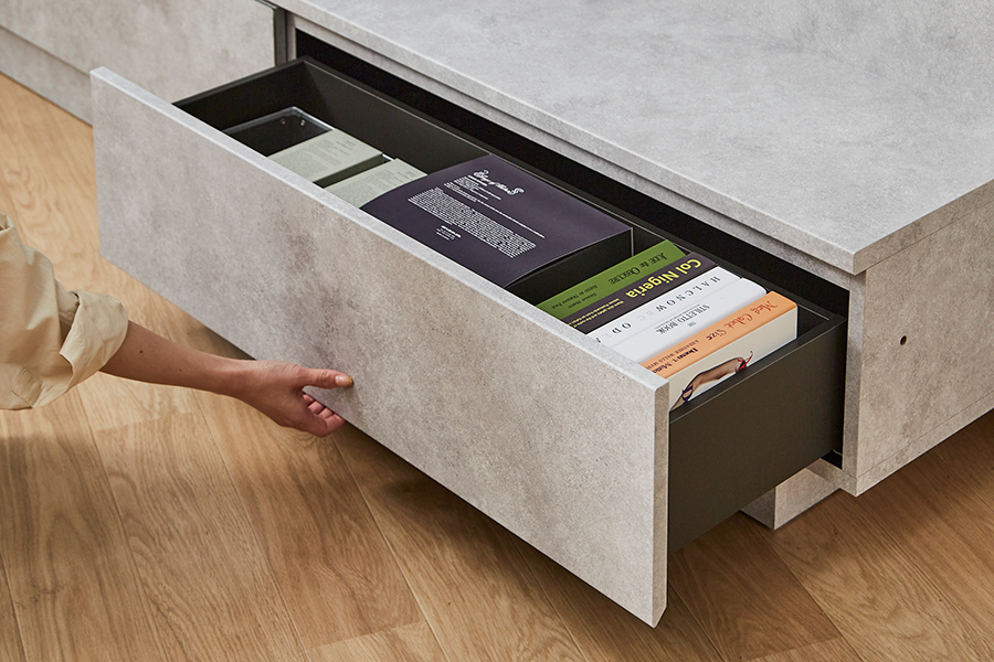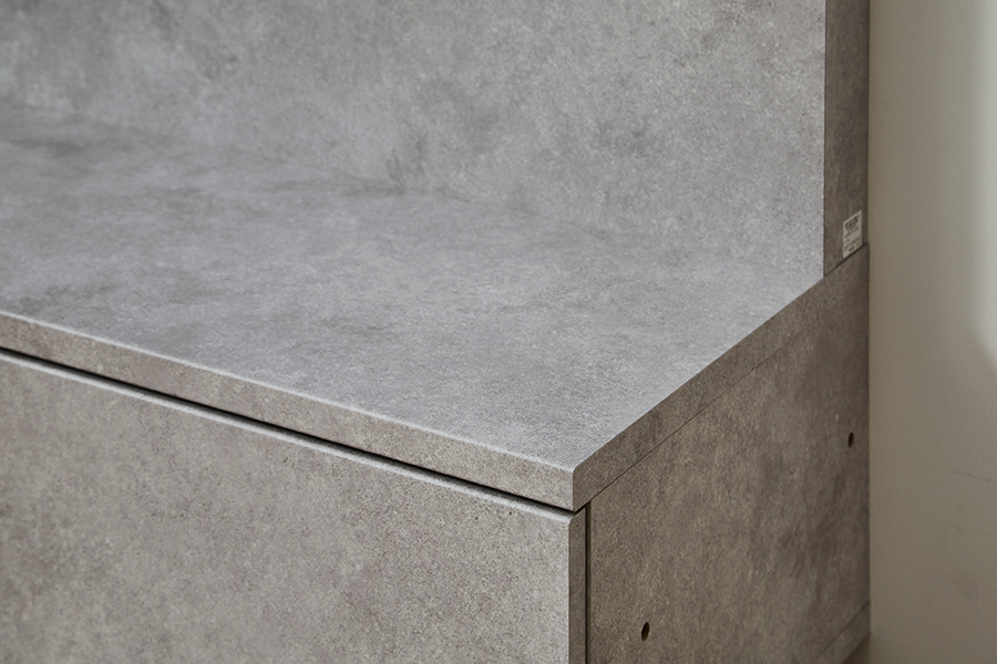 まるで本物のコンクリートのような無機質でスタイリッシュなデザインが、上質なモダン空間を演出。デザインだけでなく本体にはスマートナノ加工(傷・汚れに強い特殊加工)を施した高機能なシートを採用。機能性にもこだわりました。