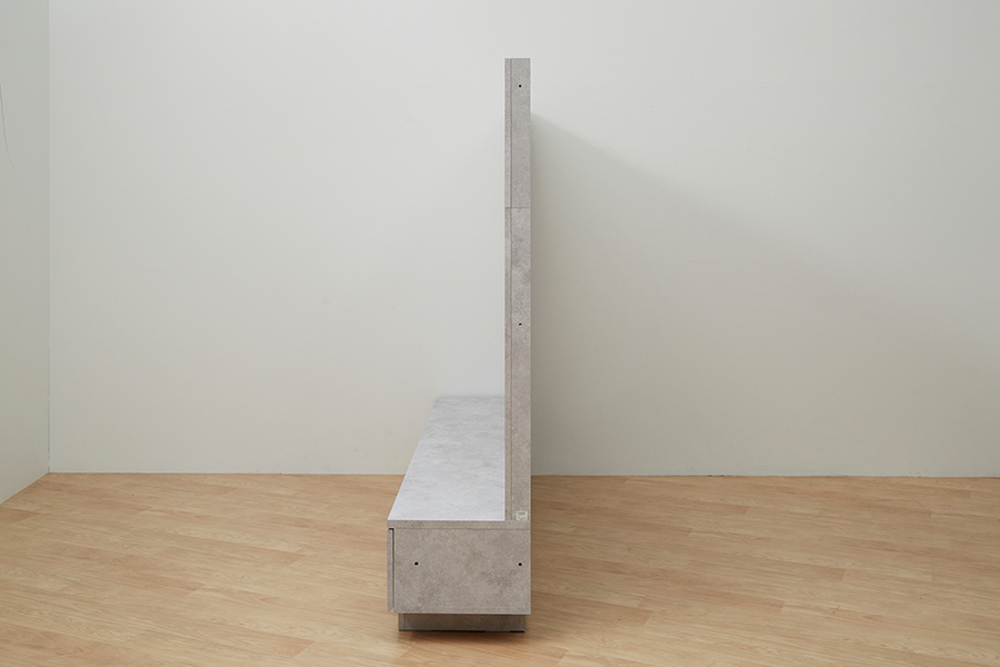 奥行42cmと省スペース設計。高さは約170cmと圧迫感のないサイズが魅力です。バックパネルは鉄芯入りのためコンパクトながらも安定感を確保しました。