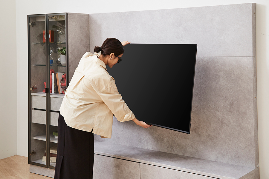 壁掛けテレビのすっきり感、壁面収納の収納力