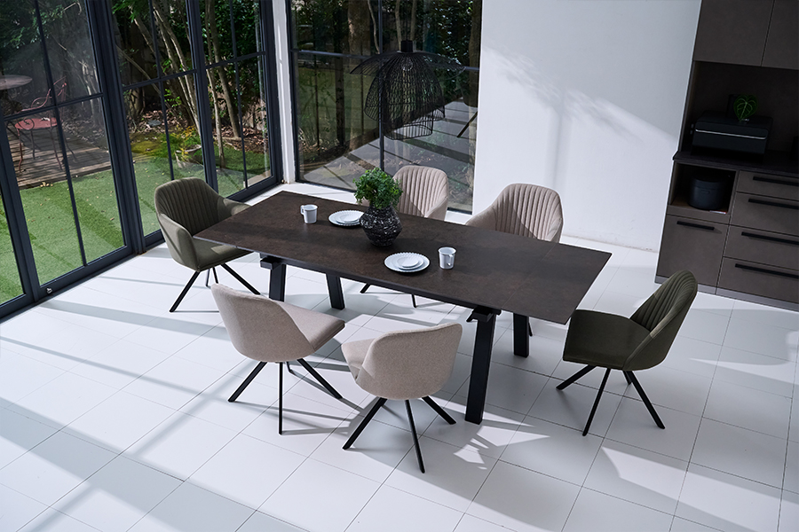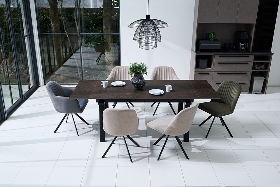 人気のセラミックダイニングテーブルが、便利な伸長機能を備えて新登場。