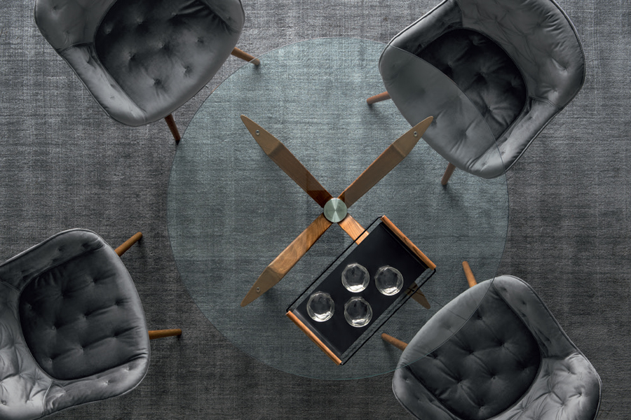 イタリアの北東部ウディネ生まれで建築、インテリアデザインと多くの分野で活躍しているデザイナー。数多くのデザインで賞を受賞し、1992年からは多機能の家具のデザインをスタート。1995年には「タンゴ コーヒーテーブル」でニューヨークMOMAから受賞するなど、技術とデザインから生み出される異色の作品が評価されているデザイナー。彼のスピリッツが感じられる「ガラス×ウッド」のラウンド型ペデスタルテーブルです。