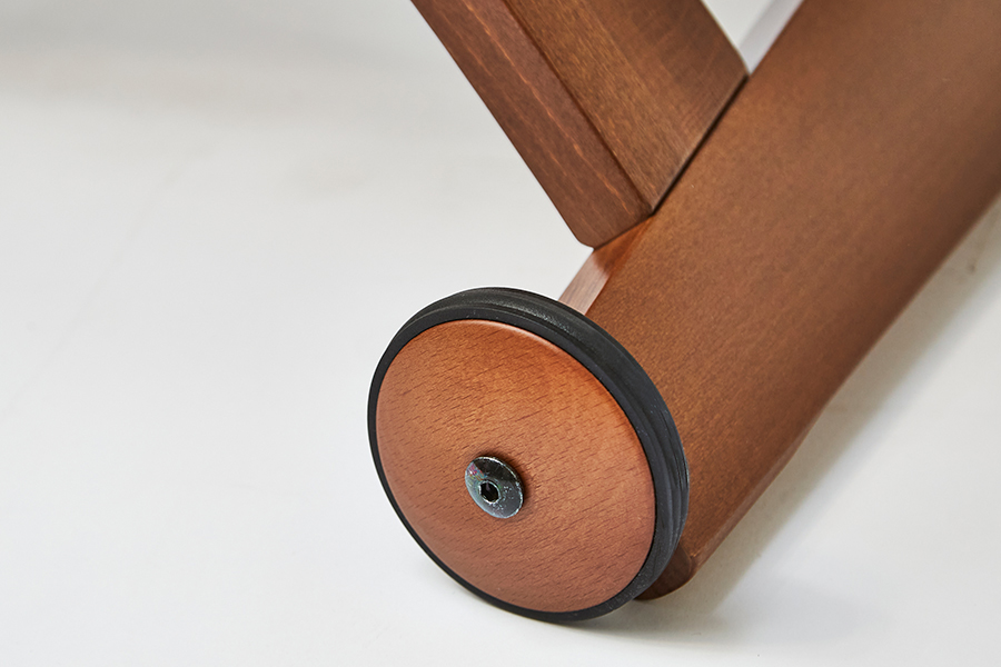脚の片側にはキャスターが付いており、昇降時の動作をスムーズにしてくれるだけでなくテーブルを移動する際も助けてくれます。