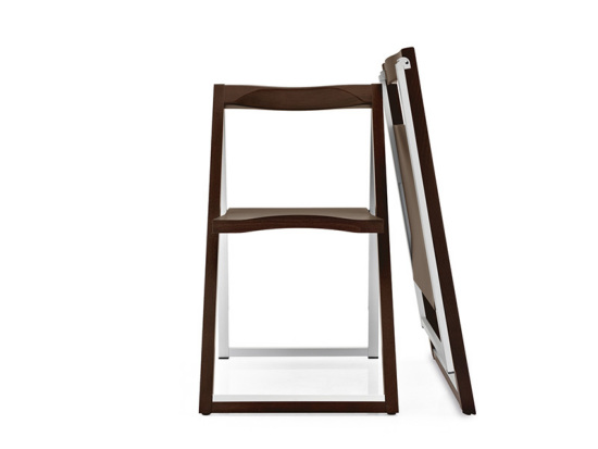 MASCOTTE テーブルには必要に応じて使用できて収納にスペースをとらないコンパクトなチェアがおすすめ。異素材を巧くデザインに取り込み、折りたたむと 1 枚の板のようになる美しいチェア。