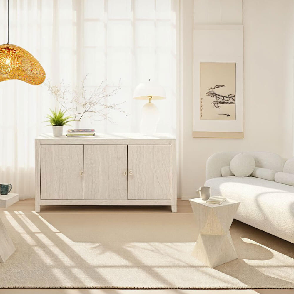 素材: 人造大理石(トラバーチン調)、 MDF(ラッカー塗装)