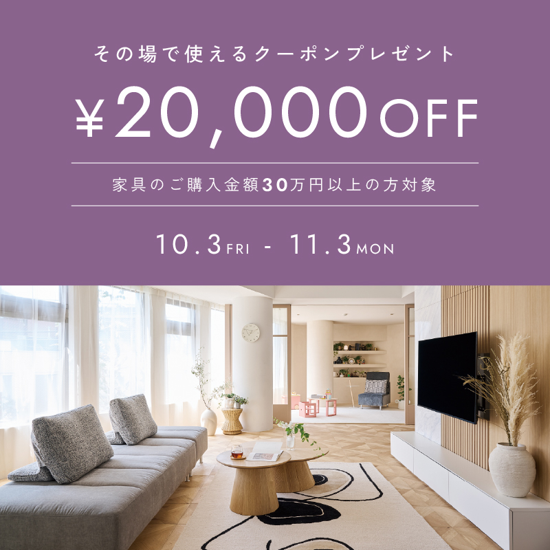 家具30万円以上のご注文で20,000円OFFキャンペーン